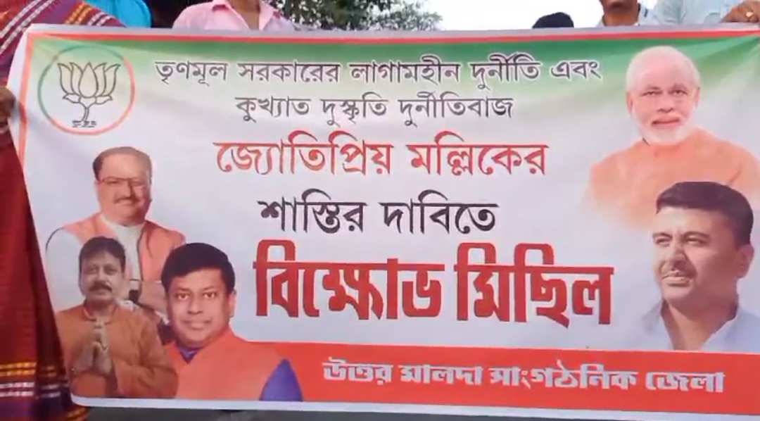 তৃণমূল সরকারের লাগামহীন দুর্নীতি এবং কুখ্যাত দুর্নীতি দুর্নীতিবাজ জ্যোতিপ্রিয় মল্লিকের শাস্তির দাবিতে বিক্ষোভ মিছিল।