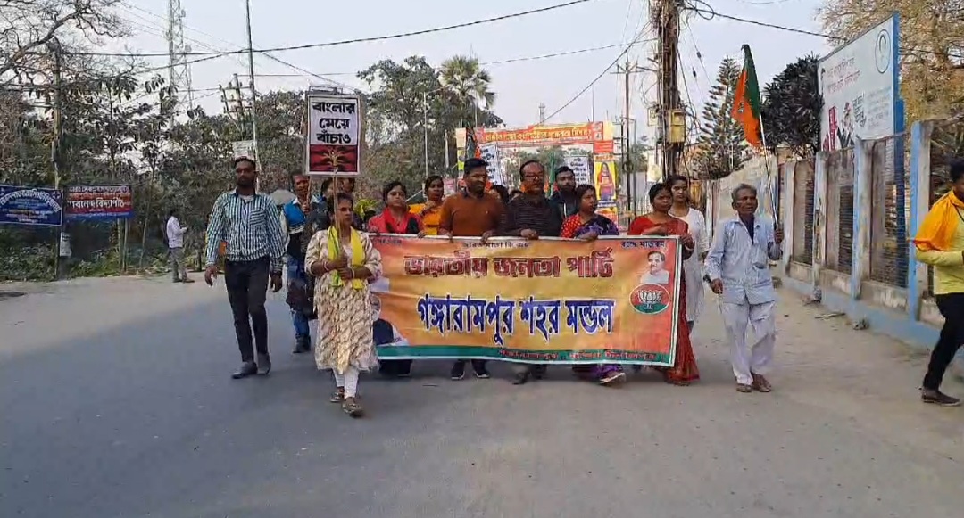 নিজস্ব সংবাদদাতা, গঙ্গারামপুর : – সন্দেশখালীর ঘটনার প্রতিবাদে গঙ্গারামপুরে বিক্ষোভ মিছিল ও থানায় ডেপুটেশন ভারতীয় জনতা পার্টির।রবিবার বিকেলে গঙ্গারামপুর কালিতলা…