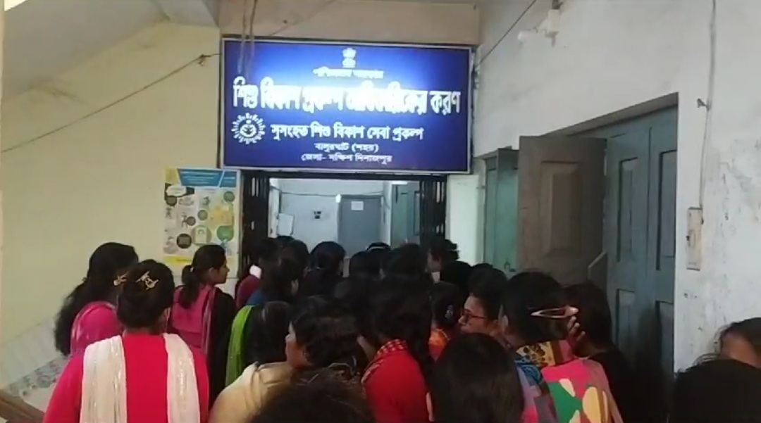 মূল্যবৃদ্ধি এবং বর্ধিত ডিমের মূল্য প্রদানের দাবিতে বিক্ষোভ অঙ্গনওয়াড়ি কর্মীদের।