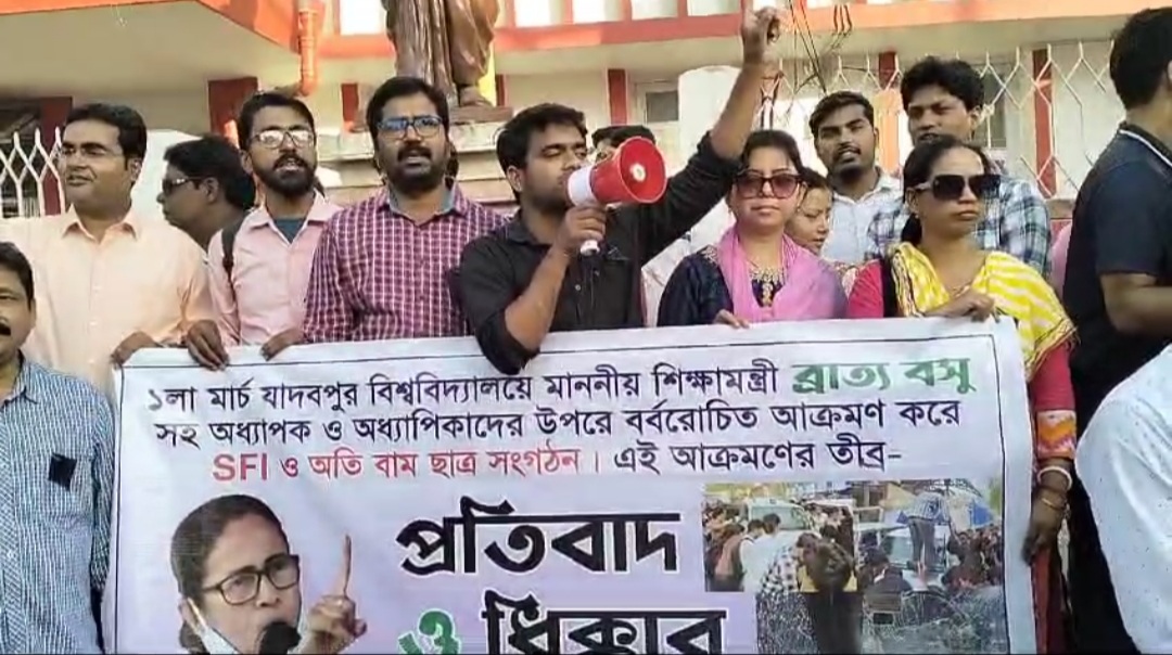 নিজস্ব সংবাদদাতা, মালদা—-যাদবপুরের শিক্ষামন্ত্রী বাত্য বসু সহ একাধিক অধ্যাপক অধ্যাপিকাদের বিরুদ্ধে এসএফআইয়ের বর্বরচিত আক্রমণের বিরুদ্ধে মালদা শহরে প্রতিবাদ ও ধিক্কার…