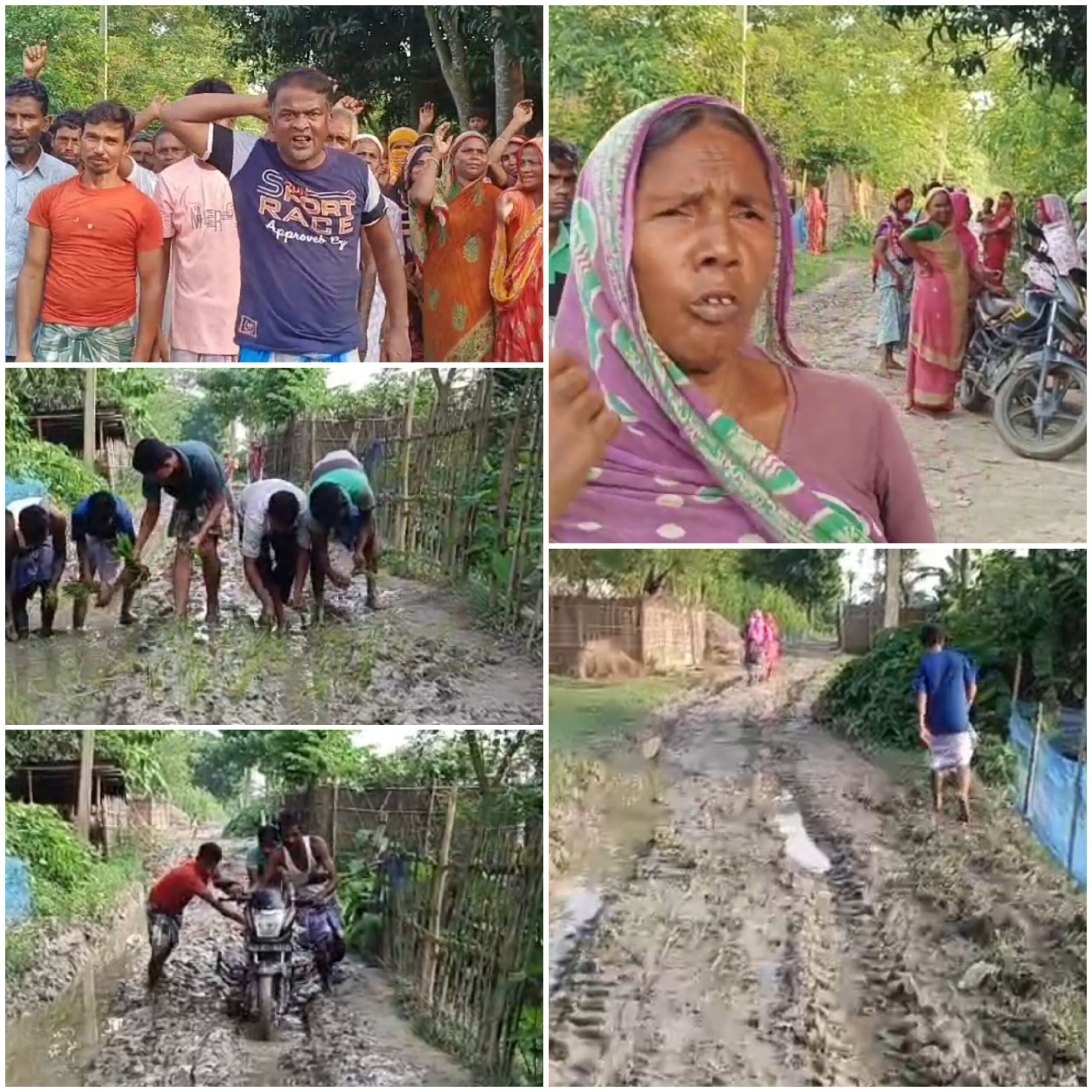 মালদা,হরিশ্চন্দ্রপুর, নিজস্ব সংবাদদাতাঃ ১৯ জুলাই : —রাস্তা না চষা জমি! না দেখলে বোঝা দুস্কর। রাস্তার দাবিতে কাদা জলে ধানের চারা…
