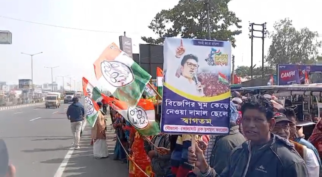 পূর্ব মেদিনীপুর, নিজস্ব সংবাদদাতা:- কোলাঘাটে মহিলা তৃণমূল কংগ্রেসের তরফ থেকে অভিষেক বন্দ্যোপাধ্যায় আমন্ত্রণ জানানোর জন্য রাস্তার ধারে জমায়েত। অভিষেক বন্দ্যোপাধ্যায়…