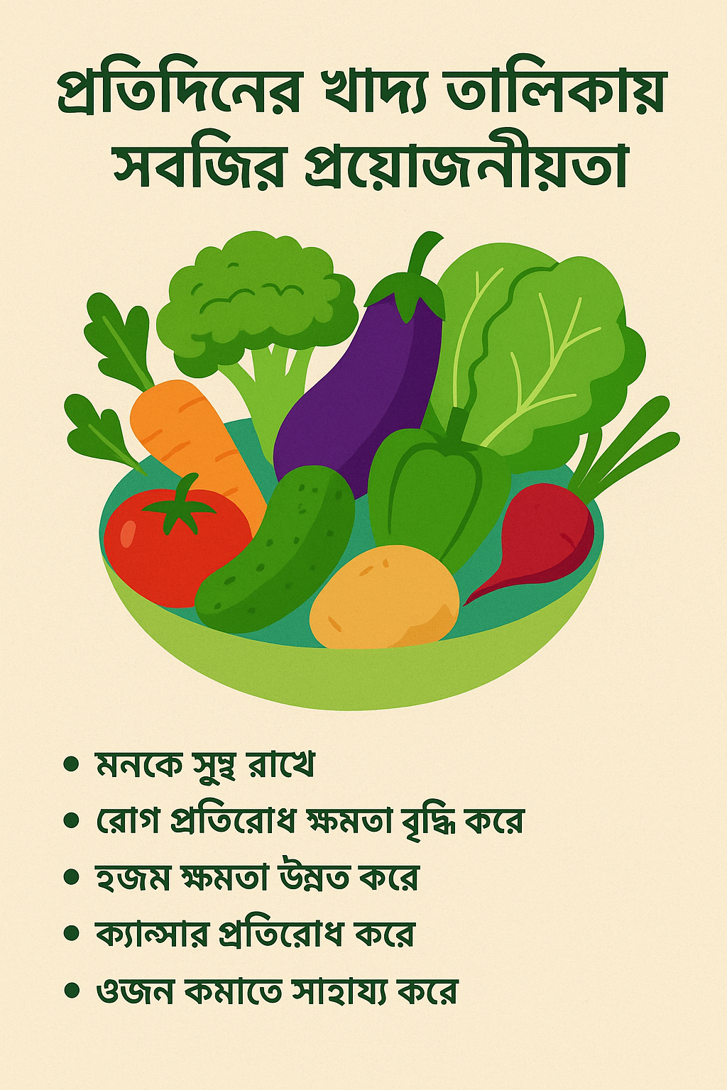 🥦 প্রতিদিনের খাদ্য তালিকায় সবজির প্রয়োজনীয়তা 📌 ভূমিকা আমাদের দৈনন্দিন জীবনে সুষম খাদ্য গ্রহণের গুরুত্ব অপরিসীম। আর এই সুষম খাদ্যের…