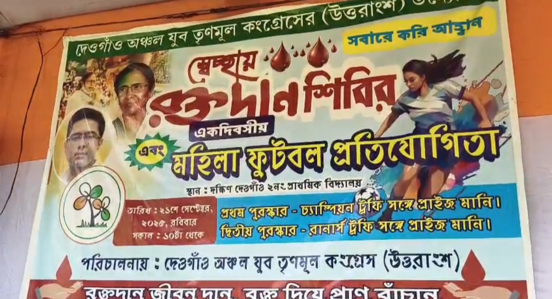 আলিপুরদুয়ার, নিজস্ব সংবাদদাতা:- স্বেচ্ছায় রক্তদান শিবির ও একদিবাসীয় মহিলা ফুটবল প্রতিযোগিতার আয়োজন করল যুব তৃনমূল কংগ্রেস। রবিবার ফালাকাটা ব্লকের দেওগাও…