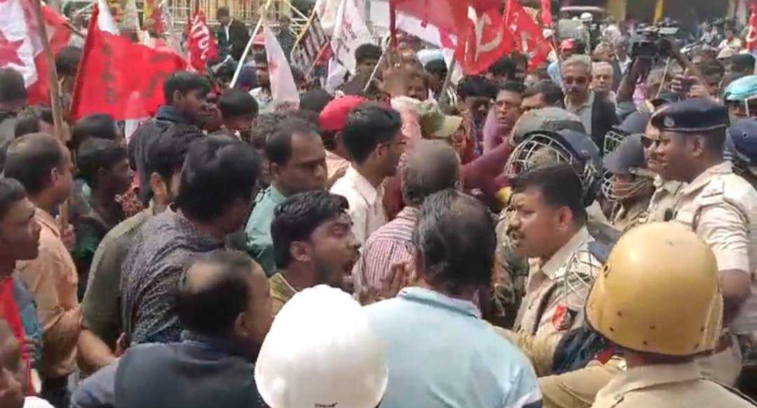 পশ্চিম মেদিনীপুর, নিজস্ব সংবাদদাতা:- বামপন্থী বিভিন্ন সংগঠনের ডাকা জেলাশাসক দপ্তরের আইন অমান্যে পুলিশের সঙ্গে দফায় দফায় ধস্তাধস্তি আন্দোলনকারীদের,বেকারদের কাজ, শ্রমকোড…