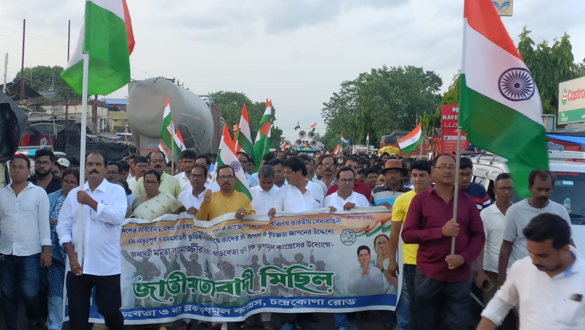 পশ্চিম মেদিনীপুর, নিজস্ব সংবাদদাতাঃ- জাতীয় পতাকা হাতে পশ্চিম মেদিনীপুর জেলার মেদিনীপুরের রাস্তায় পদযাত্রায় নেতৃত্ব দিলেন মেদিনীপুর লোকসভা কেন্দ্রের তৃণমূল সাংসদ…
