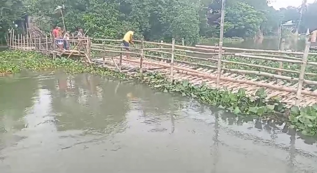 নিজস্ব সংবাদদাতা, মালদা:- জীবন হাতের মুঠোয় নিয়ে ভাঙাচোরা বাঁশের সাঁকোয় নদী পারাপার করছে এলাকার মানুষ। আর সেই কারণে উঠছে পাকা…